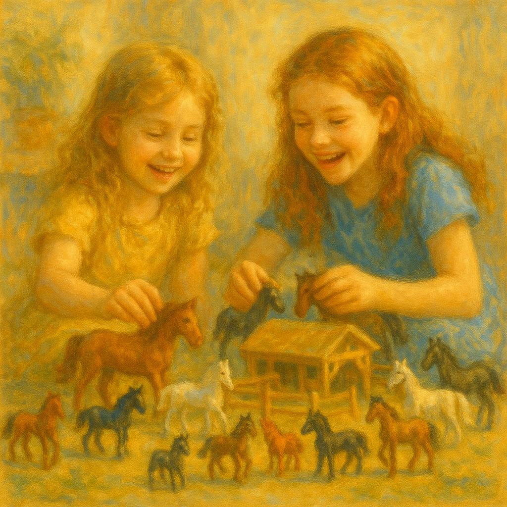 Ein großer Halt war ihre Familie. Besonders ihre Mutter und ihr Opa standen ihr in dieser Zeit nah. Im Garten spielte sie mit ihrer Schwester, ordnete mit strenger Hand die Regeln der Spiele, denn oft war sie die kleine „Chefin“. Schon damals zeigte sich ihre Liebe zu Pferden: Schleichpferde füllten ihr Kinderzimmer, Trophäen und Bilder begannen ihre Welt zu prägen. Der Stall wurde später zu ihrem zweiten Zuhause.